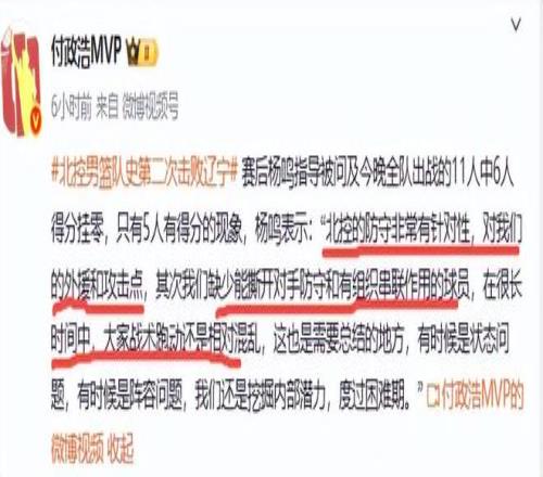 我們回到原來提出的問題上,為何遼寧隊一場比賽有這么多人得0分?究竟發生了什么?賽后主教練楊鳴道出了兩個原因,他表示,“北控的防守非常有針對性,對我們的外援和攻擊點(也就是說實行了夾擊)”,第二個原因是,“我們缺少能撕開對手防守和有組織串聯作用的球員,在很長時間中,大家戰術跑動還是相對混亂,這也是需要總結的地方,有時候是狀態問題,有時候是陣容問題。”