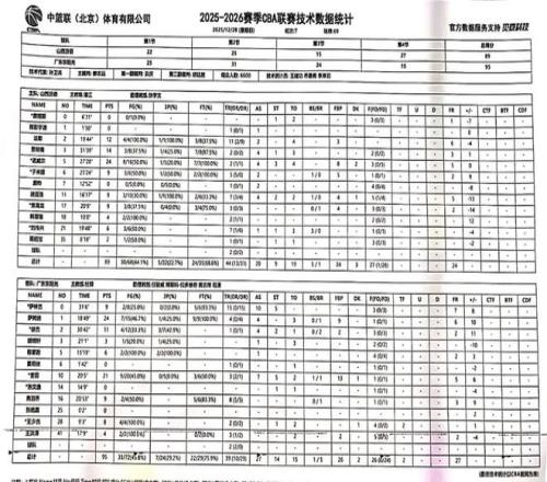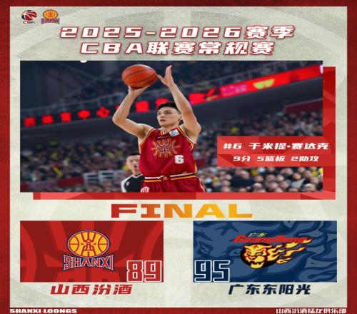 北京時間2025年12月28日19:35,2025-2026賽季CBA聯賽第七輪繼續進行,山西汾酒主場迎戰廣東東陽光。兩隊歷史上共交手48次,山西汾酒10勝38負,上賽季常規賽兩隊交手7次,山西汾酒6勝1負。本場比賽,山西隊整體發揮欠佳,全隊未能保持良好的心態,進攻端處理球過于急躁,命中率偏低,出現較多失誤,末節全隊奮力拼搏一度將比分迫近,但最終未能把握住機會,遺憾落敗,最終全場比賽結束,山西汾酒89:95不敵廣東東陽光。
