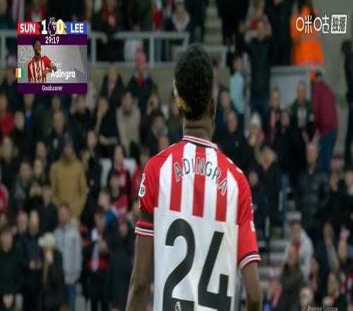 上半場進行到第28分鐘,桑德蘭前場左側邊線球拋入禁區,利茲聯球員解圍沒能踢遠,扎卡弧頂奪回球權轉身直接送出精裝直塞,阿丁格拉前插小角度冷靜推射遠角破門,桑德蘭在主場率先打破僵局。