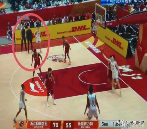值得一提的是,在比賽進行到第三節末段,場上發生了一個小插曲。當時浙江隊進攻,在進入半場陣地戰后,裁判突然一聲哨響,給了浙江隊主帥法萊卡斯一個技犯,這也令法萊卡斯一頭霧水,這時主裁判楊宏鋒走過來,對法萊卡斯進行了解釋。