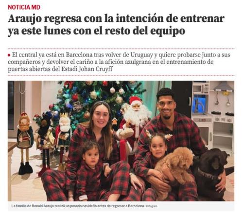 《世界體育報》指出,巴薩的圣誕假期結束,本周一,巴薩全隊回歸訓練。阿勞霍也將回到約翰-克魯伊夫球場,在6000名球迷面前參加訓練。