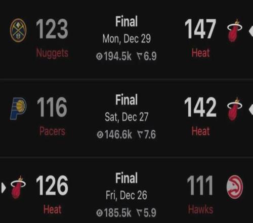 講下勝利者熱火,一直以防守強硬聞名的他們,本賽季玩起了進攻流,打掘金147分,上一場VS步行者142分進賬,連續兩場得分140+,非常極其瘋狂。