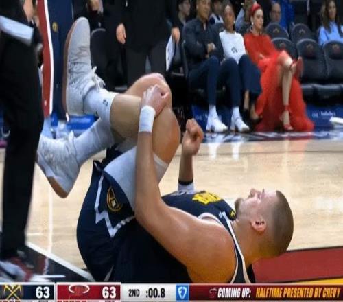 隨后約基奇左膝出現明顯的過度伸展,倒地之后第一時間就是表情痛苦的抱住左膝。隨后休息片刻,約基奇起身一瘸一拐的走回了球員通道。