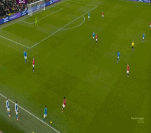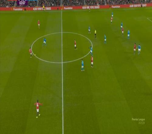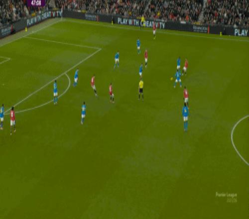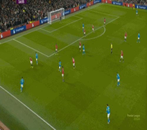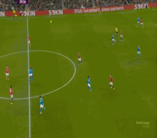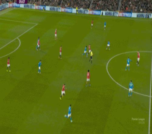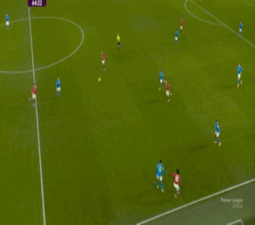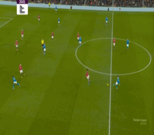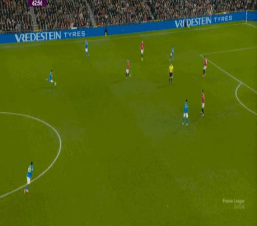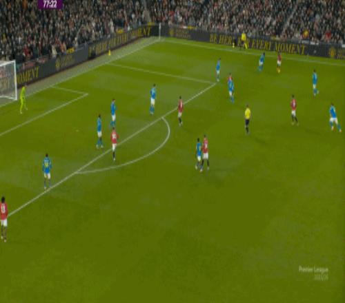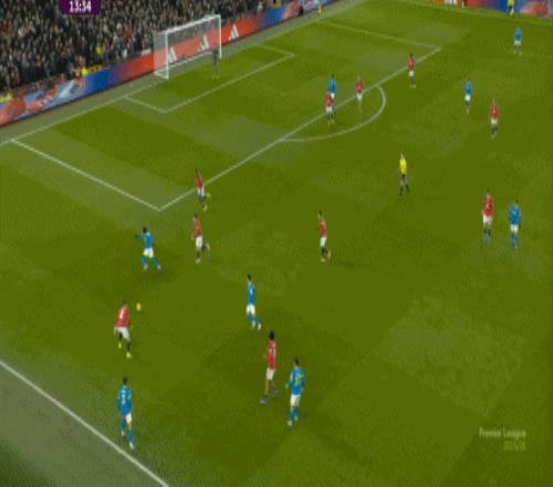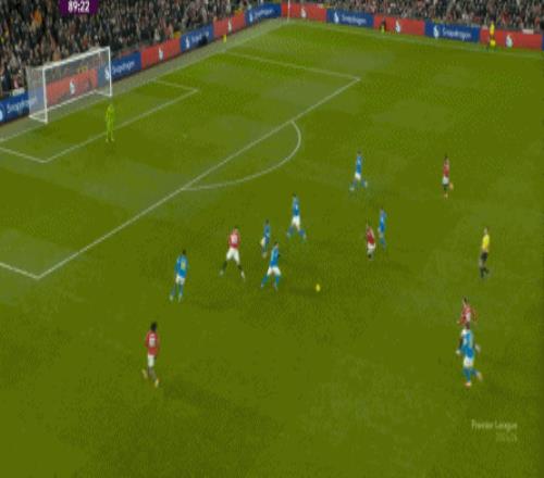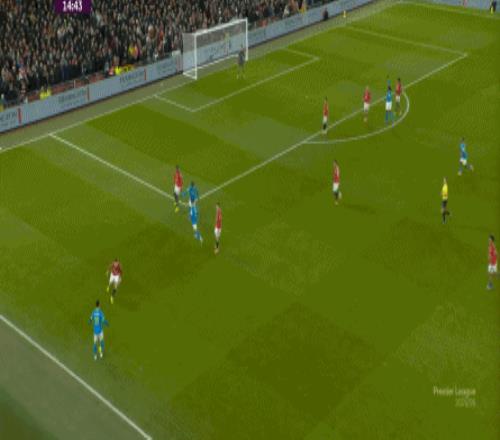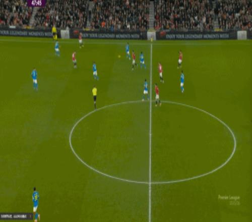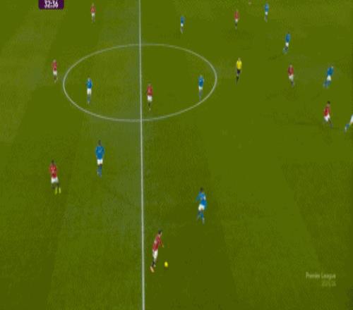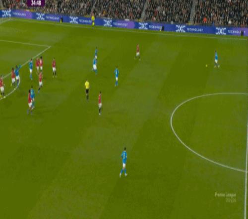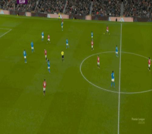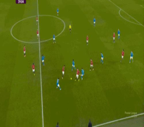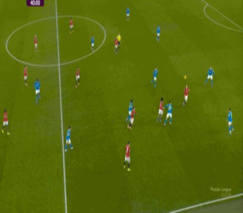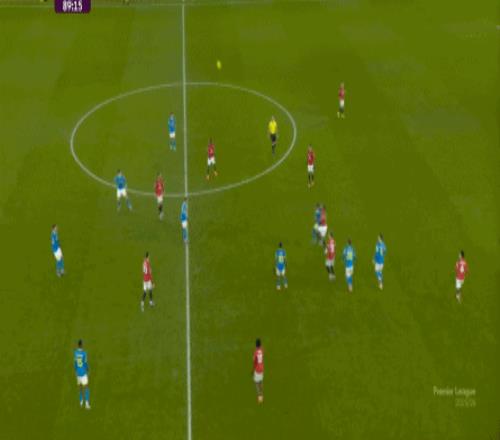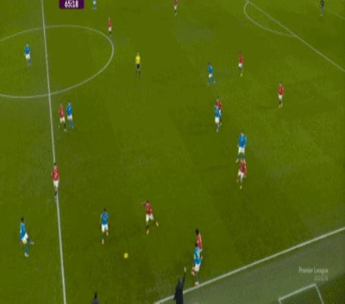 也能通過捕捉曼聯(lián)的失誤,吃掉庫尼亞之后,從右路繼續(xù)送出傳中: