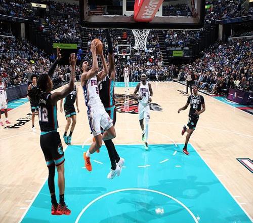 本場比賽中,76人的替補后場大將昆汀-格萊姆斯(Quentin Grimes)的表現還是非常出色的。格萊姆斯全場出場37分31秒,投籃9中4,三分線外6中2,罰球2中1,得到了11分3籃板3助攻3搶斷的數據,沒有失誤和犯規,正負值更是達到了全場最高的+18。格萊姆斯在進攻端受制于球權沒有辦法為球隊提供更多的支持,但是他也還是得到了一些分數的,而且他也能夠在一定程度上起到分享球方面的作用。最關鍵的是,格萊姆斯在防守端的表現確實是相當突出,他確實是能夠在防守端起到關鍵的作用。格萊姆斯防守賈-莫蘭特(Ja Morant)的效果相當不錯,格萊姆斯一下去,莫蘭特就能隨便亂殺了。以莫蘭特的狀態,如果沒有格萊姆斯,他應該是能打出50+的數據的。+18的正負值也能夠說明一點,格萊姆斯在場上對于比賽的影響力非常驚人。