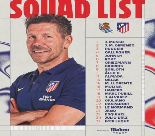 馬競客戰皇社名單:拉斯帕多里在列,尼古拉斯、朗格萊缺席 懂球帝 2026-01-04 22:12:04 北京時間1月4日,馬德里競技官方公布了西甲第18輪客場對陣皇家社會的大名單。馬競客戰皇社名單門將穆索、奧布拉克、薩爾維-埃斯基韋爾后衛希門尼斯、魯杰里、略倫特、莫利納、漢茨科、馬克-普維爾、勒諾爾芒、胡利奧-迪亞斯中場加拉格爾、約翰尼-卡多佐、科克、巴勃羅-巴里奧斯、蒙塞拉特前鋒格列茲曼、瑟洛特、巴埃納、蒂亞戈-阿爾馬達、胡利安-阿爾瓦雷斯、朱利亞諾-西蒙尼、拉斯帕多里、伊克爾-盧克西甲免費觀看_科克免費觀看_馬競免費觀看_西甲高清在線_科克高清在線_馬競高清在線 西甲 科克 馬競 皇社 略倫特 朗格萊 格里茲曼 馬德里競技 迭戈·西蒙尼 蒂亞戈·阿爾坎塔拉 賈科莫·拉斯帕多里 尼古拉斯(希臘王子) 上一篇: 6次神撲!巴薩門神直面舊主毫不手軟硬生生撲出各項比賽8連勝 下一篇: 西班牙人02巴塞羅那:巴薩末段爆發鎖定勝局,領先皇馬多達7分