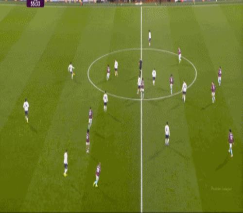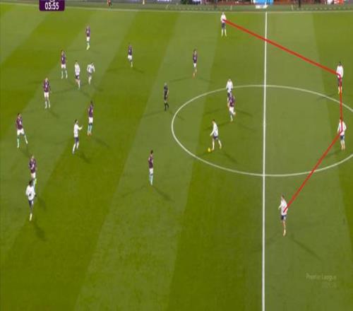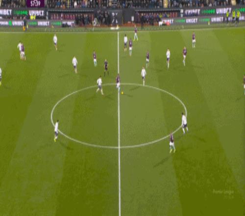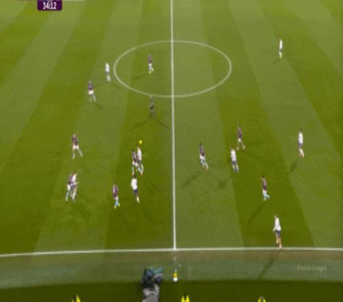 而且,攻轉守的邏輯也重新發生了變化,比如這次謝什科沒有接好球,立刻被伯恩利發展到邊路,于是你可以看到,中場、右中衛和右后衛需要形成三人之間的輪轉: