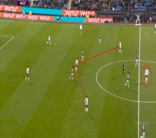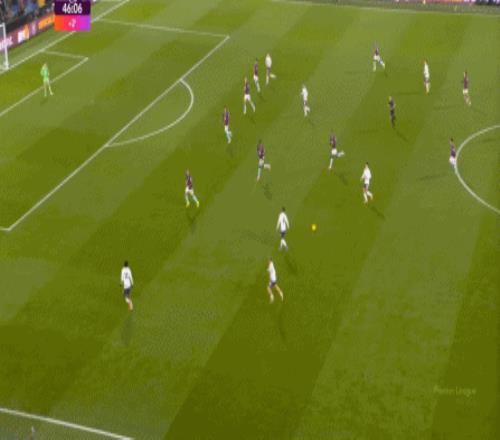 為數不多打穿肋部的好機會,還需要布魯諾指揮多爾古去跑位:
