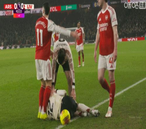 阿森納對利物浦比賽中爆發爭議一幕:馬丁內利行為引眾怒