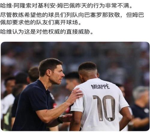 就在西超杯決賽后,傳出主教練希望球員向巴薩致敬,但姆巴佩要求隊友離開球場,被認為是對教練權威的公然挑戰!