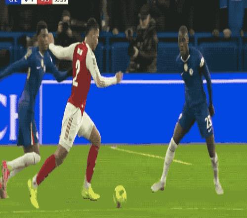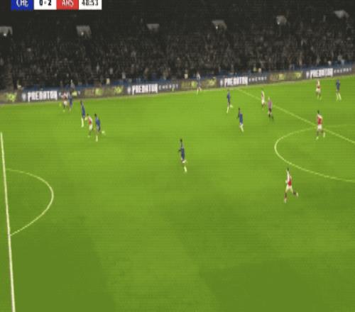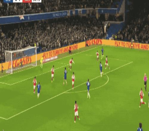 面對切爾西的強勢反撲,阿森納主動壓上,第40分鐘,薩利巴化身帶刀侍衛,禁區內的射門頗具威脅,皮球砸在球網上方。